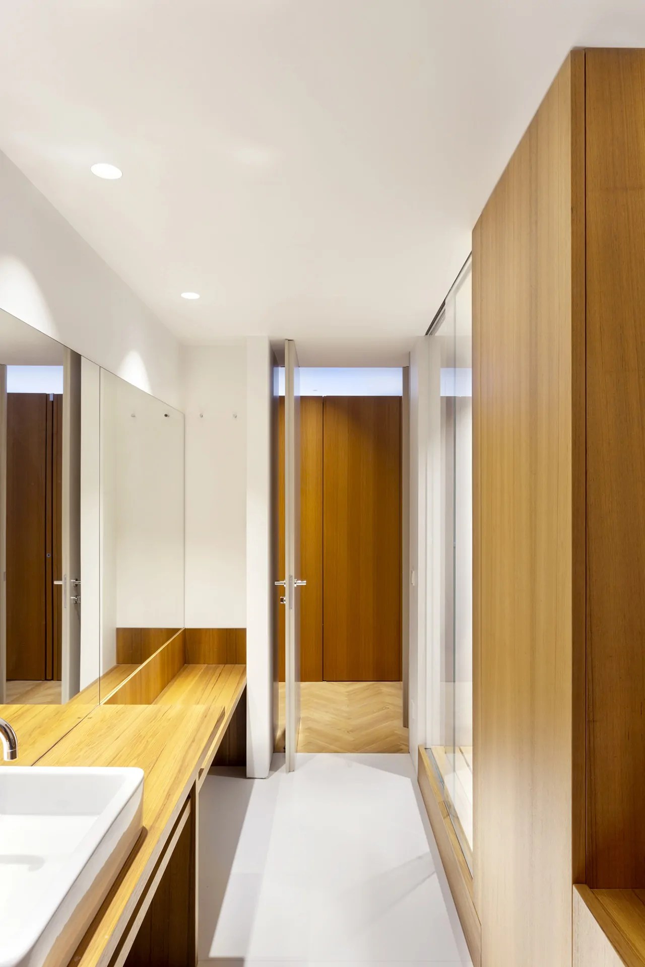 The renovation involves a first floor apartment of an exemplary building of 1950‘s Milanese architecture. On the corner of Via Goito and Via Cernaia, architect Gianni Petrini in 1951 stages a sculptural contrast between the silence of a high, solid wall and the tension and rhythm of cantilevered balconies, in a building that is an interweaving of elements of different scales. Reflection on the project stems from the relationship between the interior space and its context filtered through a façade, characterized by the succession of five large openings. A rectangular volume of 15×5 meters is cleaned up and inside it is designed a 15 meters long facade that absorbs and hides the service spaces, kitchen and bathrooms. In a dynamic dialogue between the longitudinal facades of the volume and the external façades on Via Goito, a series of “rediscovered” objects are inserted transversely, marking the rhythm of life inside the apartment.